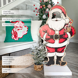 42 Inch Indoor/Outdoor Standing Santa with Cutout Face | Santa's Family Collection