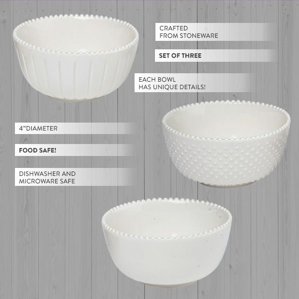 Introducing our Textured Stoneware Bowls, Set of 3 - a trio of artisanal elegance for your culinary creations.