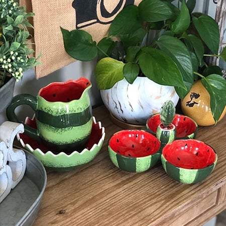 Our watermelon ceramic dishes are perfect for those backyard barbecues and get-togethers. Choose between one or all of these colorful and attractive serving dishes and bring a sweet summertime addition to the table.