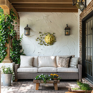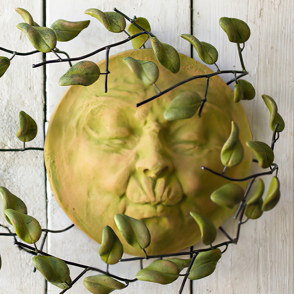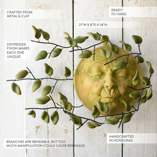 Introducing our exquisite Wind Blown Sun Face Wall Decor, meticulously crafted to bring a touch of whimsy and radiance to your space. This stunning piece features intricately designed clay leaves, adding an extra layer of charm to its unique design.