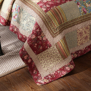 This lightweight, pre-washed quilt boasts a real cotton patchwork front, meticulously quilted together with vermicelli stitching. The backside offers a soothing beige cotton fabric adorned with a subtle ditsy red floral pattern, adding a touch of whimsy to your sleeping sanctuary. Enjoy the comfort and style of this quilt set that captures the essence of springtime dreams.