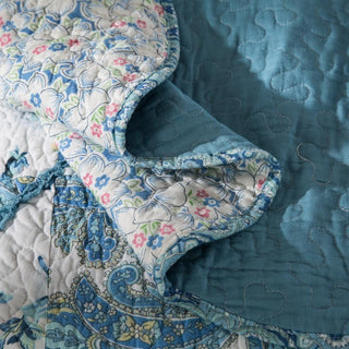 Each floral patchwork piece adds an antique touch to this quilt, creating a warm and inviting atmosphere. The cheerful combination of bright blue and white colors lends versatility to this design, making it a versatile addition that complements a wide range of home decor styles.
