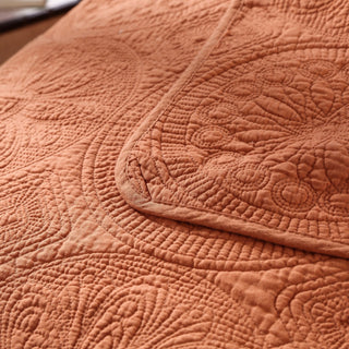The rustic, light peachy orange hue, deliberately faded through a meticulous stonewash process on the cotton fabric, imparts a casually elegant cottage look to your bedroom.