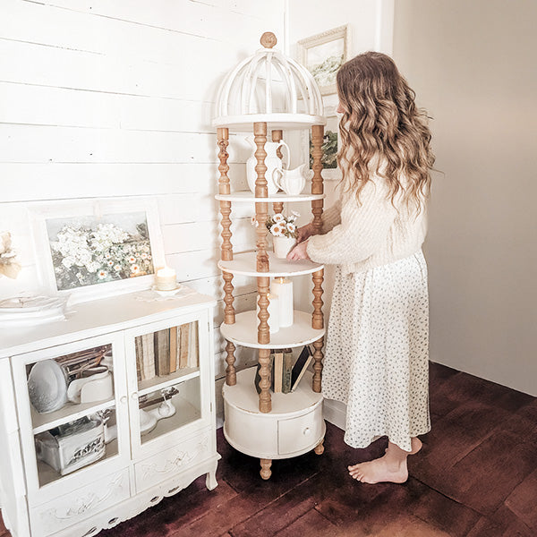 Thank you to @the_martinmanor for the photos and video of the Tall Cupola Five Tiered Shelf with Drawer