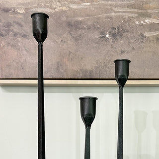 Create an atmosphere of refined romance with this elegant set of Iron Candle Holders. Designed to captivate with their slender, elongated silhouette, this trio brings graceful height and a sense of sophistication to your living room decor. Whether glowing with candlelight or standing alone as sculptural accents, they instantly elevate any tabletop, mantel, or shelf with their minimalist charm and old-world allure.
