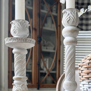 Light up your space with this cute set of whitewashed candle holders! They've got a slightly rustic, vintage-y vibe that's just perfect for adding a cozy touch to any room. Pop in some skinny candles and you're good to go for a chill evening or a pretty dinner setup. They look great on a mantel, a shelf, or even as a centerpiece. Super easy way to add a bit of charm!