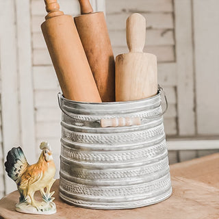 Imagine ALL you can do with it in your home!!! Replace your plastic containers organizers and wicker baskets with this beauty! It is also the perfect piece to contain the clutter in your office hold utensils and produce in the kitchen or even soaps and rolled up towels in bathroom! How ADORABLE would this pail look with paintbrushes scissors and pens and in your craft room?! This gem can decoratively store just about ANYTHING in your home!!! Ohhhhhhh the possibilities!