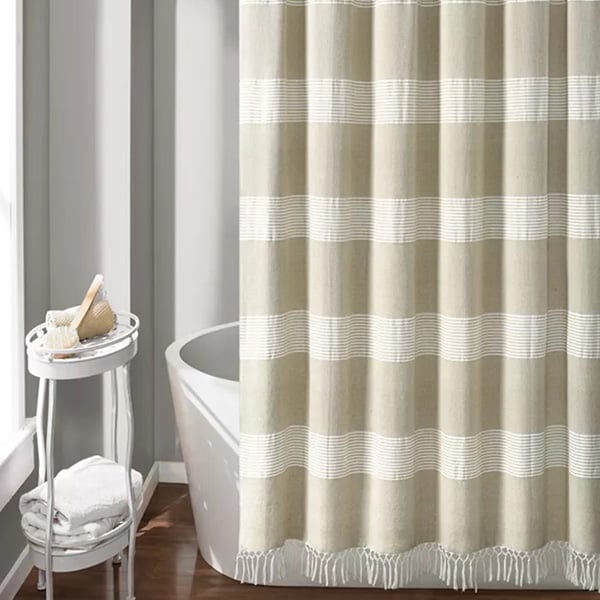 Who's ready for another great steal?! We were on the hunt for something simple yet interesting. Something with that little extra designer touch. Adding the tassel detail to these beautifully crafted Taupe Knotted Tassel Shower Curtains transformed a simple curtain into a piece that would fit perfectly into any farmhouse home!