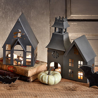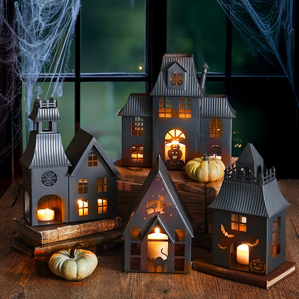 Each house can accommodate a tea light with a door on the back, casting a hauntingly beautiful glow that creates a chilling atmosphere. Whether arranged as a centerpiece, placed on your mantel, or adorning your windowsill, these haunted houses are the perfect way to embrace the Halloween spirit.