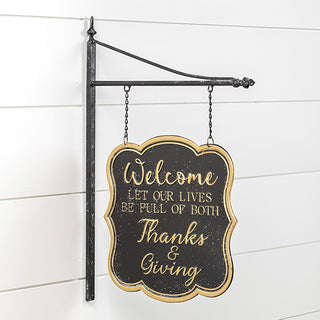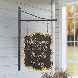 Embrace the spirit of gratitude with our "Thanks and Giving Sign With Bracket," the perfect addition to your fall porch decor. This charming sign adds a warm, welcoming touch to your entryway, inviting guests to share in the season's blessings.