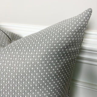 Our elegant Betty pillow cover features a beautiful white polka dot pattern on top of a sophisticated gray backdrop. This pattern is timeless and versatile and effortlessly complements any interior. This pillow measures 20x20 inches. We suggest pairing it with a 22x22 insert for a nice full look.