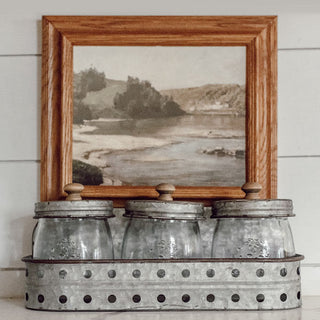 This vintage inspired caddy is actually made to HANG on the wall OR it can sit on any flat surface! How unique! And it comes with three glass storage jars! It's like 4 steals in one! Use this to hold your utensils, pens and pencils, scissors, fresh herbs, picked flowers, and so much more!! It is also perfect for storage, craft supplies, hardware, office supplies, bathroom supplies, kitchen storage, parties, dinners... the sky is the limit!