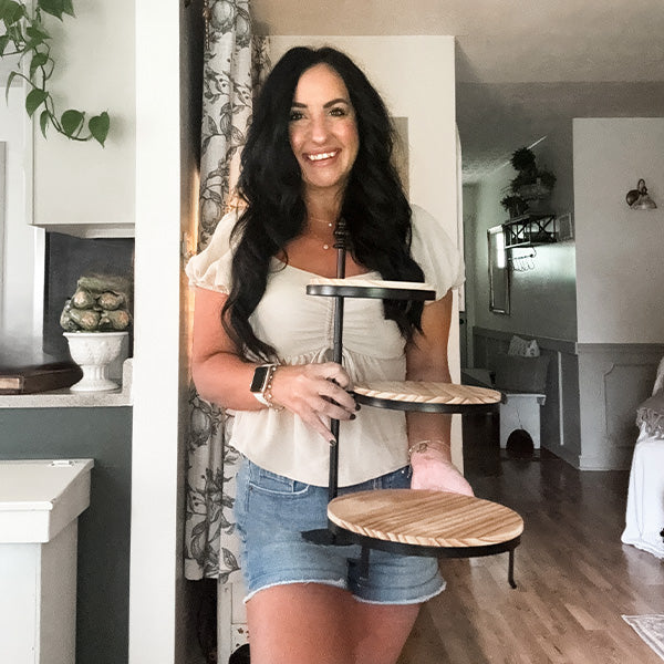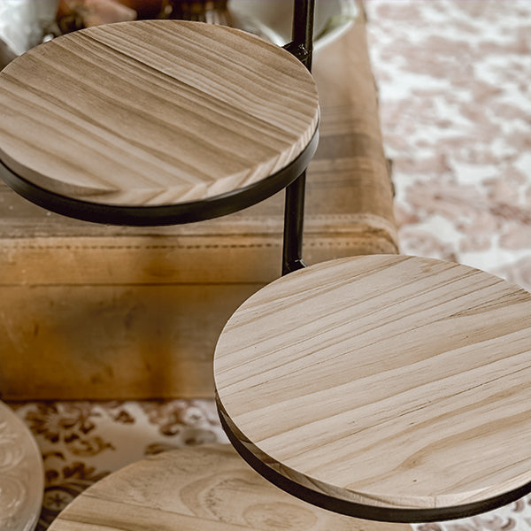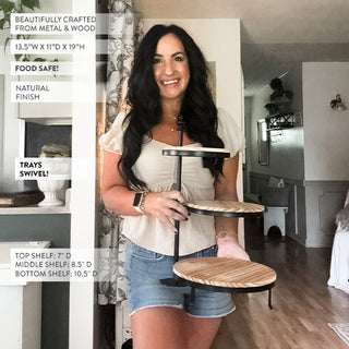 This Wood and Metal Tiered Swivel Tray is super unique and will look even better in your home! Use it for your small dinner parties or as a stunning centerpiece on your dining room table. The possibilities are truly endless with this tiered tray!