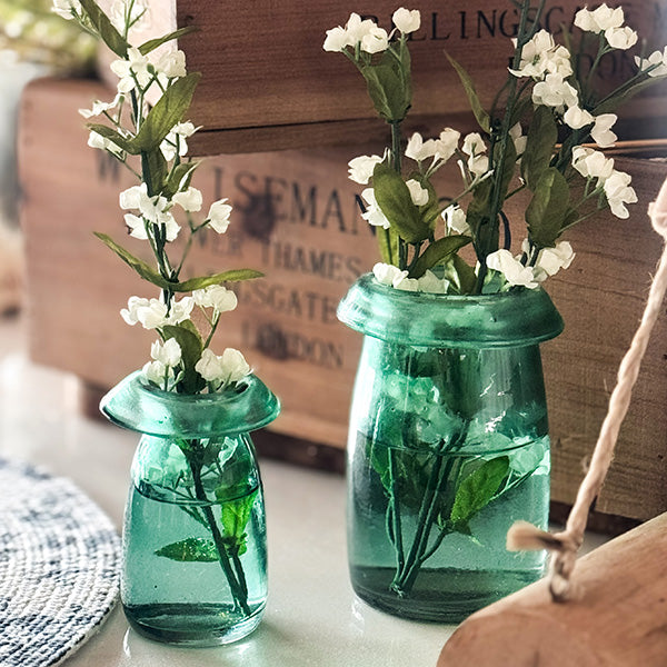 Whether styled with a single stem or displayed as-is, they bring a gentle, vintage touch to any shelf, nightstand, or windowsill.