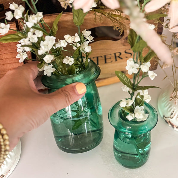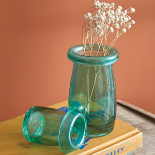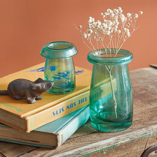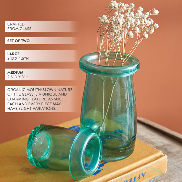 Bring effortless elegance and old-world character to your space with our Organic Mouth-Blown Heirloom-Style Bud Vases, Set of 2. Each vase is individually mouth-blown, giving it a subtly organic shape and beautiful imperfections that reflect true craftsmanship. With a soft blue-green tint and heirloom-inspired silhouette, these vases look like cherished treasures passed down through generations.