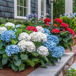 This unique offer combines 3 outstanding mophead varieties in a single container. Blooming from summer through fall, this stunning 3-in-1 shrub fills the garden with large blossoms in shades of pink, blue, and white. This exceptional combo will add vibrant color to any shady garden.