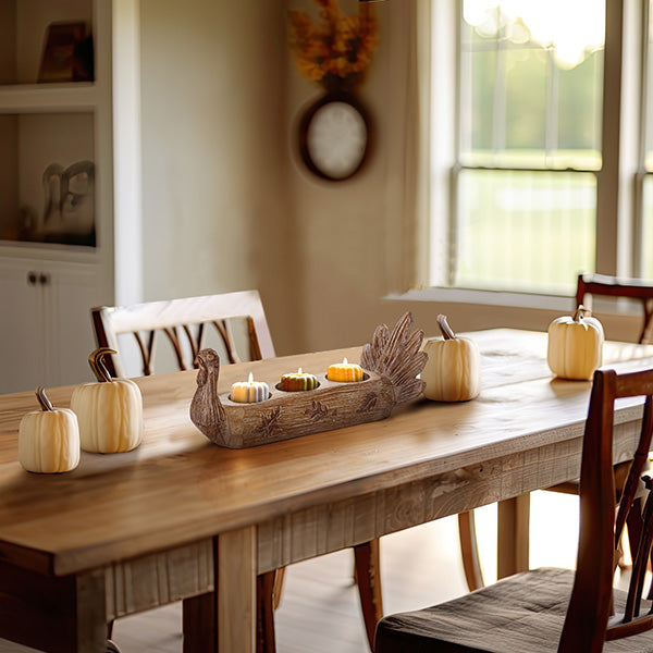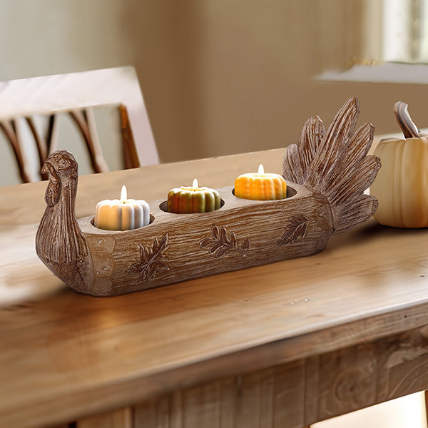 Crafted with care, it holds your favorite tea light candles while spreading a warm glow and holiday cheer. Whether for your Thanksgiving centerpiece or simply to brighten up your space, our Tabletop Turkey Candle Holder adds a playful and charming vibe to your casual celebrations.