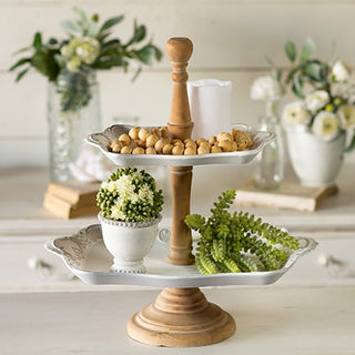 Both functional and decorative, our newest steal features a classic look that will add instant charm to your home. Crafted wood, this vintage-inspired Two Tiered Stand has beautifully detailed embellished trays and will make an eye-catching addition to your space.