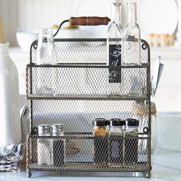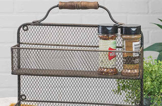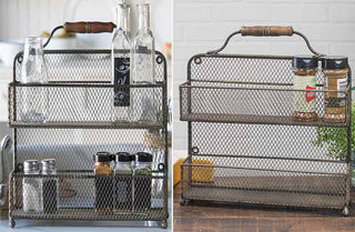 With TWO tiers this rack is here to make a statement. We love that you can rest in on a counter hang it on the all OR get SUPER CREATIVE and hang it on the inside of a cabinet!