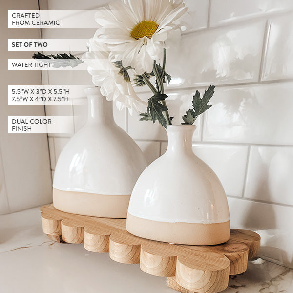 Add a touch of classic elegance to your home with this Two-Tone Ceramic Vase Set. The timeless design features a dual-color finish, with a creamy white top gracefully blending into a natural beige lower section. This sophisticated contrast brings a refined, understated charm to any room.
