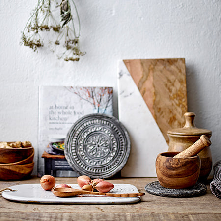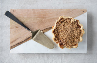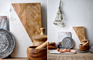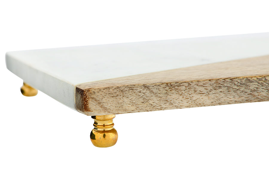 Elevate your cooking experience and gatherings with this beautiful two-toned cutting board. Made with marble and mango wood finish, this cutting board is one of a kind.