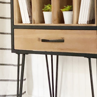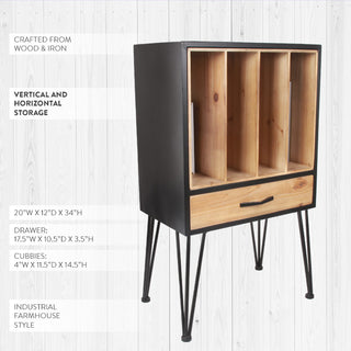 Bring some unique style to your home with today’s steal! This Two-Toned Mid-Century Cubby Cabinet is stunning with its contrasting wood, iron base and handy storage options! We LOVE every inch of this piece! Style this beauty in your living room to collect your books and remotes. Add this beauty to your dining room or kitchen for your coffee cups, small plates, or even your K-cups! You’ll LOVE seeing this piece styled in your entryway holding potted plants to greet you every day... your guests are sure to ooohhh and aaahhh over it.