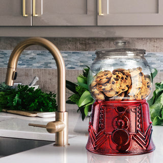 This 1-and-a-half-gallon glass cookie jar will bring such a fun pop of color to any room. Put it in your kitchen, dining room, foyer, game room, or bar area to add charm and nostalgia! Fill it up with all your favorite sweet treats! But be careful, this super cool piece will have you visiting your sugar supply way more frequently just because of how darn cute it is!!
