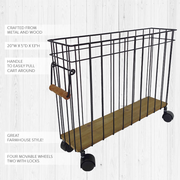 This Utilitarian Wood and Metal Farmhouse Rolling Storage Cart is super functional and has charming farmhouse appeal! It’s on wheels, so you can easily motor it around to wherever your latest project is. Whether you are gathering supplies for a super cool craft project or just doing laundry, this cart will be your new best friend! Park this rolling beauty just about anywhere that needs a little extra charm and storage!