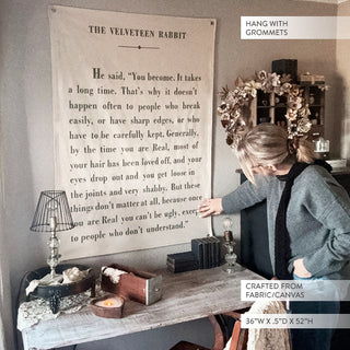Transform your home into a haven of nostalgia and charm with this enchanting 57-Inch The Velveteen Rabbit Hanging Wall Canvas. Inspired by the timeless tale of love and becoming “real,” this wall decor adds a heartwarming touch to any room. Its oversized design and muted, vintage-style color palette make it a standout piece while seamlessly complementing modern farmhouse and classic decor styles.