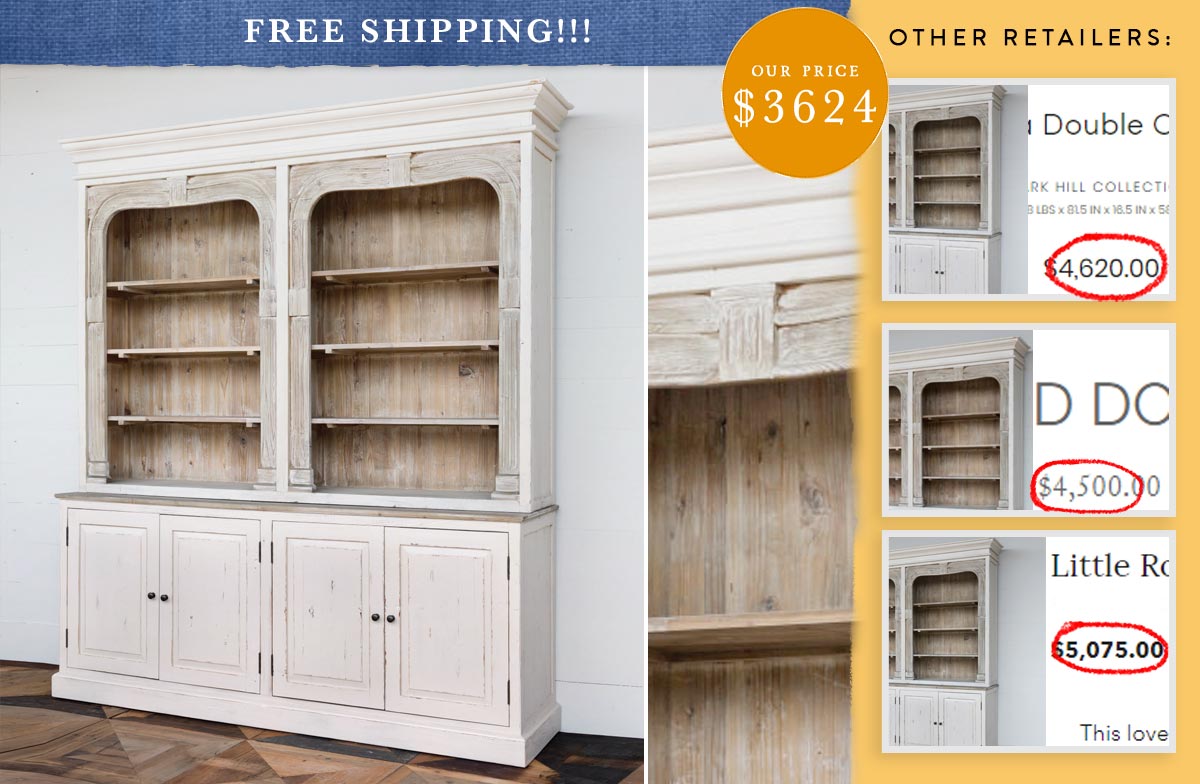 We are OVER THE MOON about this piece!!!! If you were in LOVE with the cabinet just like this, but wanted more… well then, this piece is for you! It has EVERYTHING times two! We were giddy before and of course we are even more now too!! AND can you guess what we are going to say next…this HUGE piece has FREE shipping!!