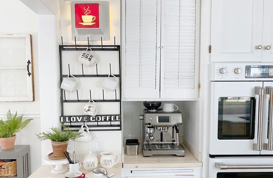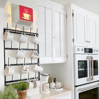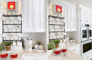 The greatest thing about this beautiful mug rack is how simple it is to install. Imagine the space you can save on your counter or in your cabinets just by simply adding this piece to your wall.