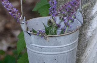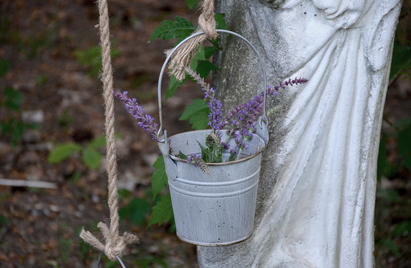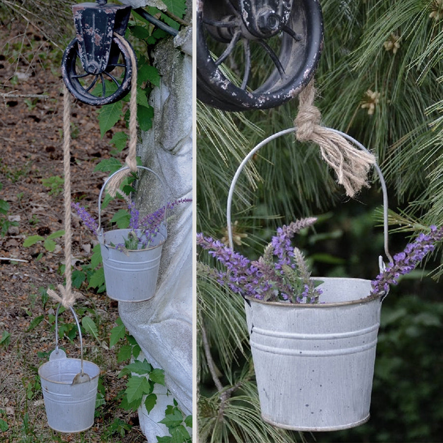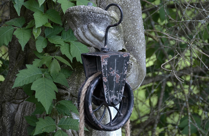 Haven't you noticed how things just look prettier when you hang them up using vintage industrial hardware? :) It really adds an unexpected look to any space. Hook the pulley on a tree branch a fence or a hook on your porch to give your backyard a rustic farmhouse feel.