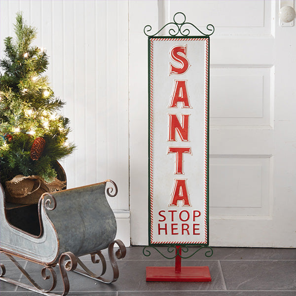 Place the "Santa Stop Here" sign by your front door to welcome St. Nick, or position it as a festive focal point in your living room – its versatile design ensures it brings cheer to any corner of your home.