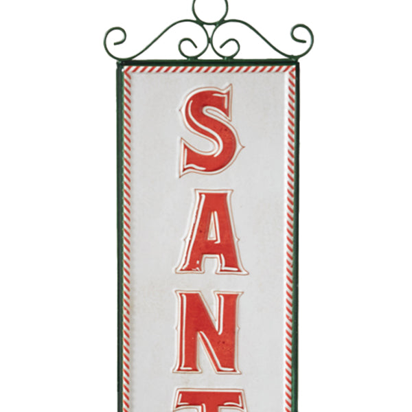 Crafted with attention to detail, this vintage-inspired sign captures the whimsy of yesteryears, reminding us of the joy and anticipation that Santa brings. The classic design is complemented by a sturdy stand, making it a standalone piece that's easy to display.