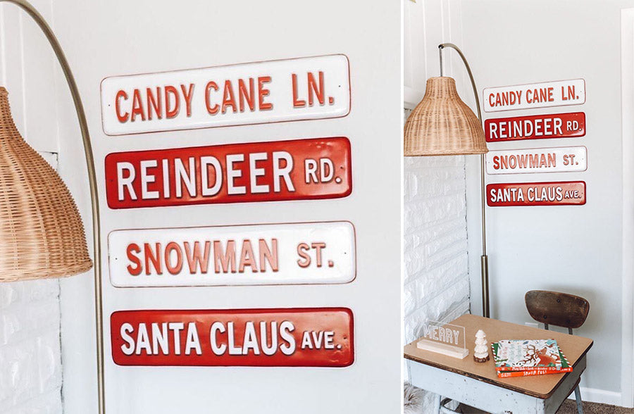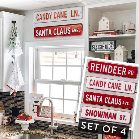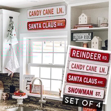 These Christmas village street signs read, “Reindeer Rd,” “Snowman St.,” “Candy Cane Ln.,” and “Santa Claus Ave.,” and you are sure to LOVE these just like we do! Hang these on any wall to add some holiday cheer! Style these in your entryway next to all your other seasonal décor! We can see these hanging in your kitchen above your pantry door or right next to your freshy baked gingerbread cookies! Hang them near your Christmas tree or stockings! You and your family will love breaking these out every holiday season.