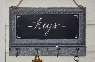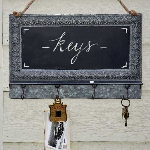 With its handy chalkboard surface you can create to-do lists or notes to self for quick reminders as you’re rushing out the door! Use the hooks as a place to keep keys hats scarfs and other various personal items. What’s truly great about this piece is you can write the names of whoevers items they are above each hook! What we also LOVE LOVE LOVE about this piece is it would be AMAZING in sooo many places and spaces! Place one in your kitchen with a list of needed groceries or even to display what’s for dinner. Hang one in your bathroom to hold hand towels and for friendly reminders. Even display one in your office space or craft room for a new take on wall art!
