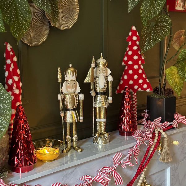 These aren’t mass-produced wooden toys — they’re heirloom-inspired decorative nutcrackers designed for visual impact. The gently weathered metallic gold creates depth and charm, ensuring every angle feels collected-over-time, not factory-fresh.