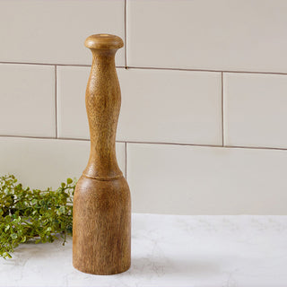 A- Muddler: 3" Diameter x 12" H - made of polished mango wood