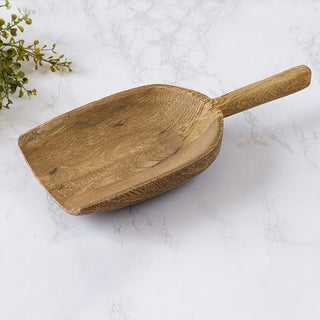 B- Scoop: 5.5" W x 13" D x 2" H - made of raw mango wood - Packed: One Per Package (you will receive one kitchen tool of your choice)