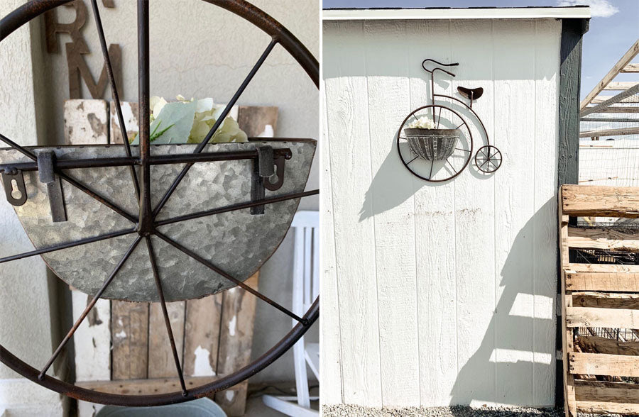 We LOVE the idea of this bicycle planter hanging in your entryway to greet your guests! Put your favorite greenery or flowers in this to WOW everyone. Hang this in your kitchen to add some extra farmhouse charm!! Place thisbicycle planter in your bathroom or really in any room!! We can imagine it above your mantel for a BEAUTIFUL focal point or greeting guests on your covered porch! The possibilities are truly ENDLESS!