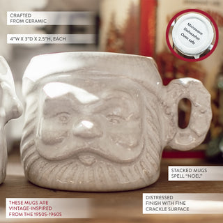 - Stacked mugs spell "noel"