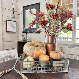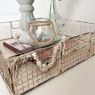 This LARGE Distressed Metal Basket is PERFECT to hold your kid's toys in their room, your daily mail in your entryway, or your rolled-up hand towels in your bathroom. We LOVE how the possibilities for this set are ENDLESS! Place small potted plants in it and use it as a centerpiece! Place this beauty on your ottoman to hold magazines and remotes!