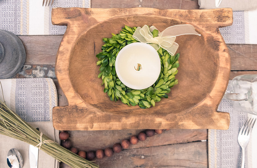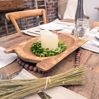 For generations, families in Europe used to use similar dough bowls to mix and prepare the dough for their daily bread. Our dough bowl today is a beautiful reproduction of these early 19th century dough bowls that were so essential in everyday life. This very unique piece lends itself to a multitude of uses and makes a great conversation-starter.