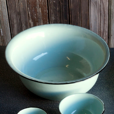 Just LOOK at this gorgeous enamelware basin with an exclusive soft blue egg color inspired straight from nature! This thing is over 12" diameter!!! The original enamel basins were used years and years ago in farmers' markets residential kitchens diners general stores guest houses... Literally everywhere you can think of!