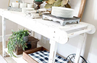 We are swooning over the creative design and rustic appeal that this wooden table will bring to your farmhouse! Imagine it in your dining area, living room, kitchen, mudroom, entryway or even office space showcasing all of your favorite items! Fill it with greenery, your family photos, books or your lovely farmhouse accent pieces! It is sure to be a statement piece!