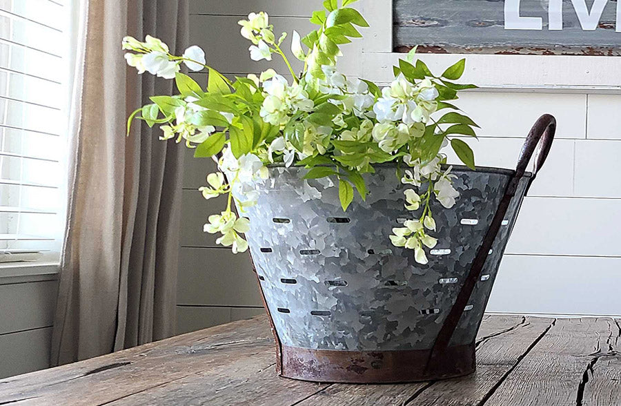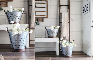 This Olive Bucket is vintage-inspired and PERFECT for any space in your home. This bucket is filled with SO much charm and history…this was once used during olive harvest for picked and washing! This is WONDERFUL for your bathroom supplies. We can see this in your kitchen holding your cooking supplies! Put all your craft supplies in this for all your DIY projects. Place these in your foyer to collect shoes or use it as a planter! We are TOTALLY in LOVE with this bucket! There are sooooo many décor and style possibilities.
