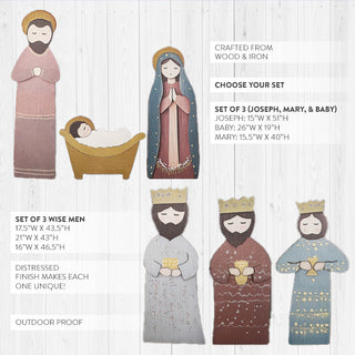 16"W x 46.5"H - Packed: One Set Per Package (you will receive one Outdoor Nativity Set of your style choice)