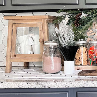 We can picture the freshly baked pies or fried pies that will be proudly displayed on your kitchen counter! Don't limit yourself just to pie either; add your favorite seasonal decor on the top and your holiday plates or mugs inside the glass! This cupboard is also the PERFECT spot for holding your coffee bar essentials, spices, or even cookbooks and recipes. The sky is the limit with this and it's such a fun, unique way to bring the beauty of old farmhouses into your home today!