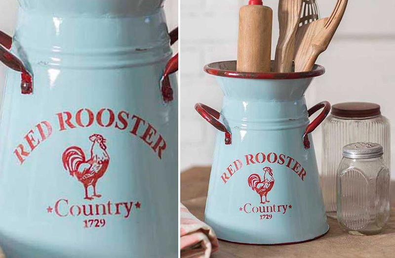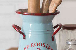 This antique piece can be used for holding just about anything not just your cooking gear! Put some wildflowers in this to brighten up your space or display it as is for a conversation piece! The bright red rooster on this is sooo cute! You can really show your personality with this one! We can't wait to see what you guys come up with!