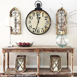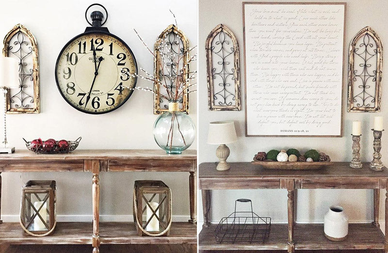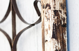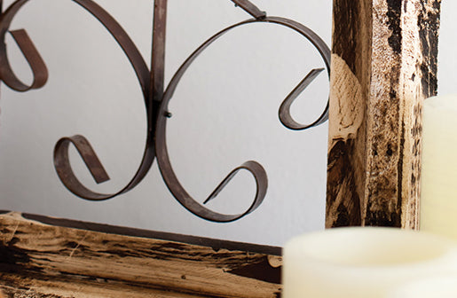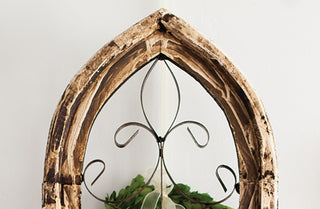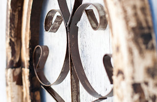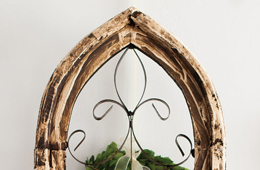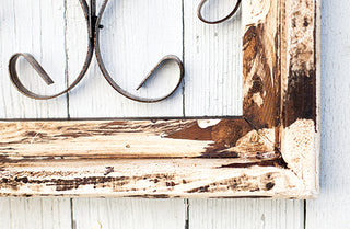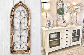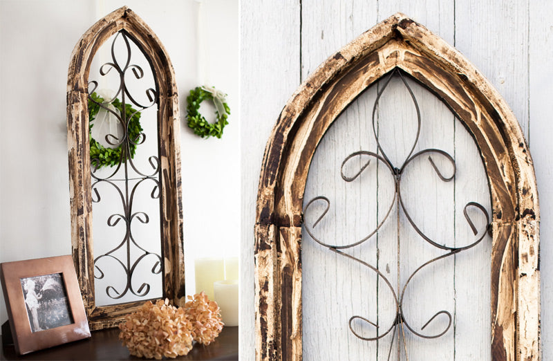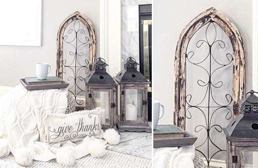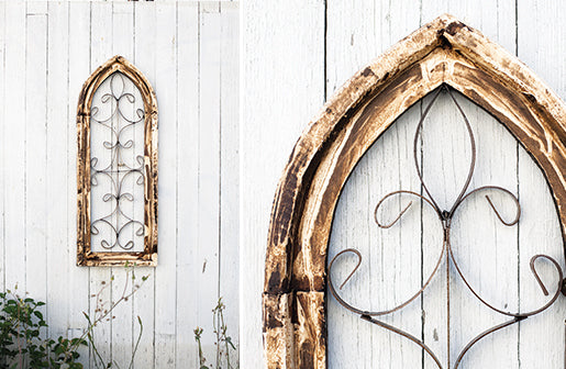 Chances are you have seen (& dreamed of owning) one of these AHHmazing handmade wall pieces! The distressed wood and sturdy iron make this architectural design exude a farmhouse feel that will radiate throughout any space! These beauties aren't actual antiques but they are handcrafted the same way they were in the 1900s by the same families yep we know SUPER cool :)